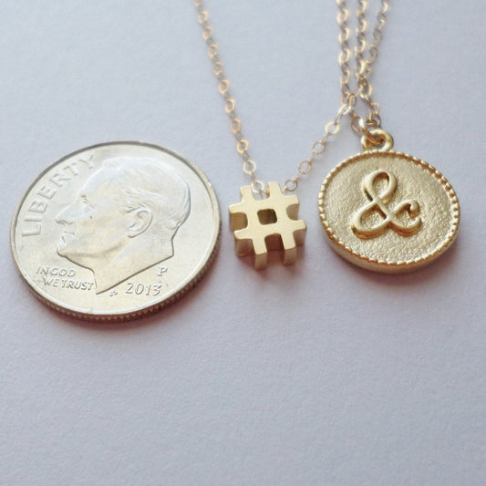 Layering Necklace - Set of Two Gold Necklaces - & and # Gold Necklaces - Number Necklace - Gold Ampersand Necklace - Christmas Gift