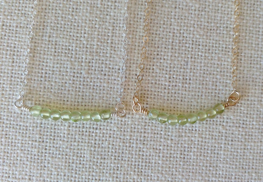 Peridot Necklace, Silver Peridot Necklace, Peridot Bar Necklace, Gemstone Jewelry, Layering Necklace, Bridal, Weddings, Mothers Day Gift
