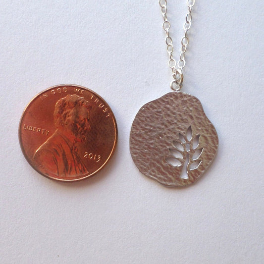 Silver Leaf Cutout Disc Necklace - Silver Disc Necklace - Sterling Silver Disc Necklace - Bridal Gifts - Christmas Gifts - Nature Jewelry