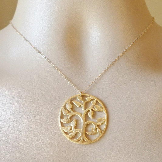 Gold Tree of Life Necklace - Hammered Gold Tree Necklace, Gold Plated Brass and Gold Filled Necklace - Bridal - Weddings - Mothers Day Gift