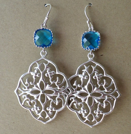 Aqua and Silver Drop Earrings - Aqua Earrings - Blue and Silver Earrings - Birthstone Jewelry - Mothers Day Gift