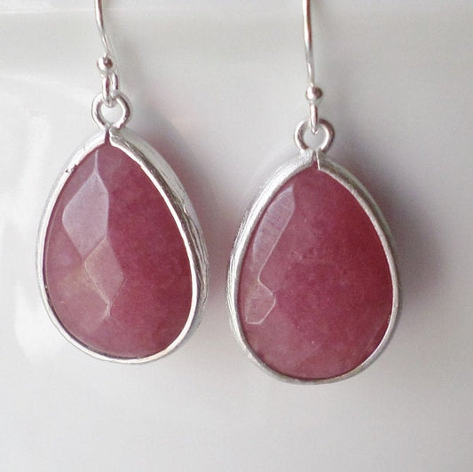 Only One Available - Silver and Burgundy Earrings - Framed Stone Earrings - Sterling Silver and Silver Plated Earrings - Christmas Gift