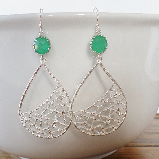 Green and Silver Drop Earrings - Palace Green Earrings - Silver Earrings - Silver Teardrop Earrings - Chandelier Earrings - Mothers Day Gift