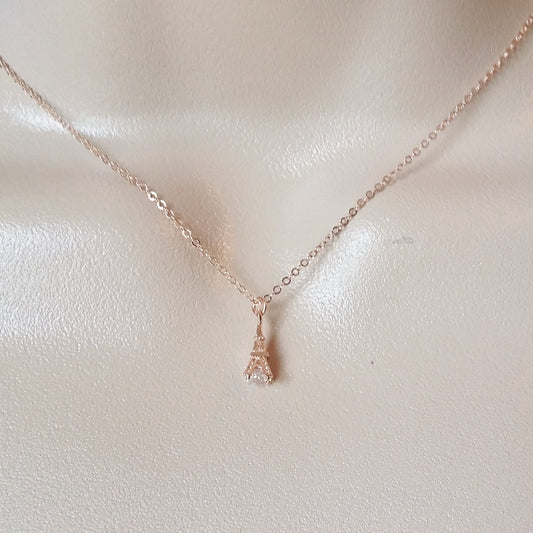 Eiffel Tower Necklace, Rose Gold Tower Necklace, Rose Gold Eiffel Tower Necklace, Rose Gold Necklace, Bridesmaid Gifts, Wedding, Geometric