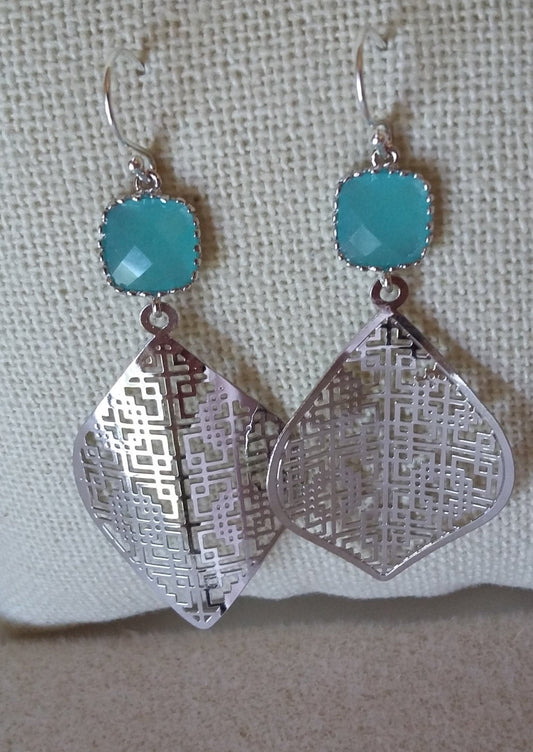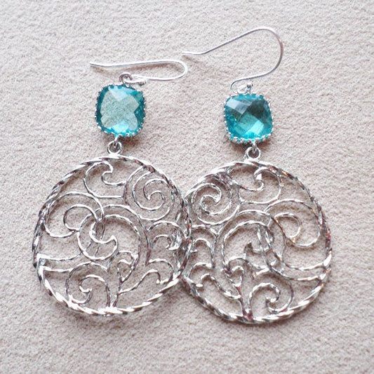 Aqua and Silver Drop Earrings - Aqua Earrings - Blue and Silver Earrings - Birthstone Jewelry - Mothers Day Gift