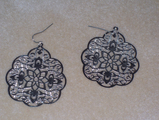 Silver Earrings - Sterling Silver Large Filigree Dangle Earrings, Valentines Day, bridesmaid gifts, wedding, grey, white, silver