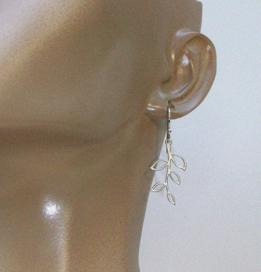 Tiny Olive Branch Earrings, Silver Earrings - Sterling Silver Olive Branch Earrings, Bridesmaid Gifts, wedding, grey, whit