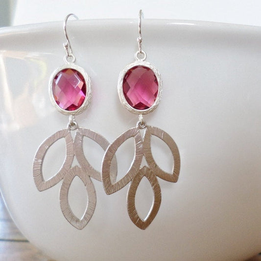 Pink and Grey Earrings - Fuschia and Charcoal Earrings - Silver Earrings - Gray Earrings - Weddings - Bridal - Mothers Day Gift