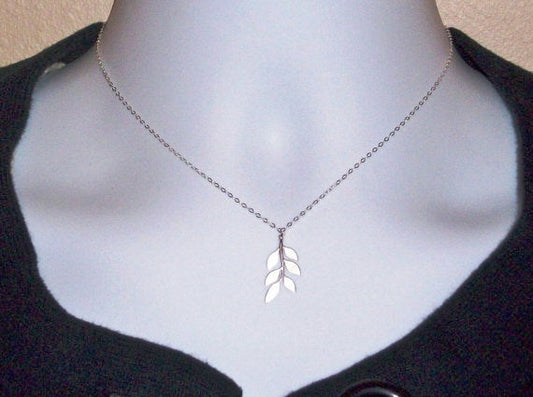 Leaf Necklace - Sterling Silver Leaf Necklace, Sterling Silver Necklace, Valentines Day, bridesmaid gifts, grey, silver, white