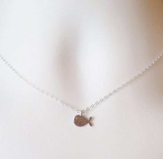Silver Fish Necklace - Tiny Silver Fish Necklace, Sterling Silver Necklace, bridesmaid gifts, grey, white, silver, Christmas Gift