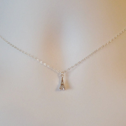 Silver Eiffel Tower Necklace - Tiny Silver Eiffel Tower with cubic in the bottom Necklace, Sterling Silver Necklace, Christmas Gift