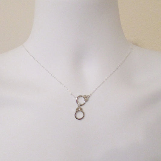 Lariat Handcuff Necklace - Silver Handcuff Necklace - Handcuff Pendant Necklace - Sterling Silver Necklace - Handcuff Steampunk Necklace