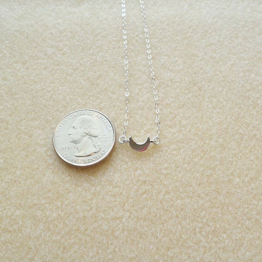 Sideways Silver Moon Necklace - Tiny Flat Silver Moon Necklace - Crescent Moon Necklace - Sterling Silver Necklace -Christmas Gift