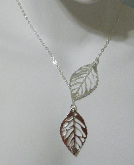 Leaf Lariat Necklace - Silver leaf lariat necklace, Sterling Silver Necklace, Valentines Day, bridesmaid gifts, weddings, grey,silver,white