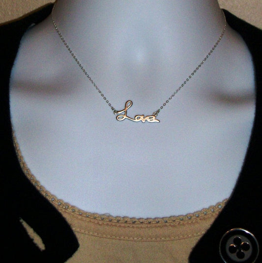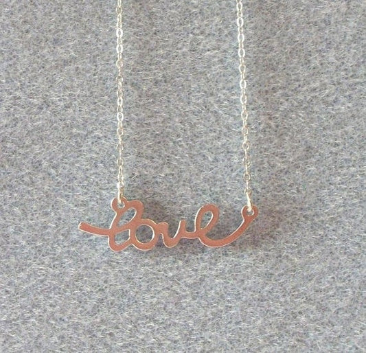 Love Necklace - Silver Cursive Love Necklace, Sterling Silver Necklace, Word necklace, Lower case love necklace
