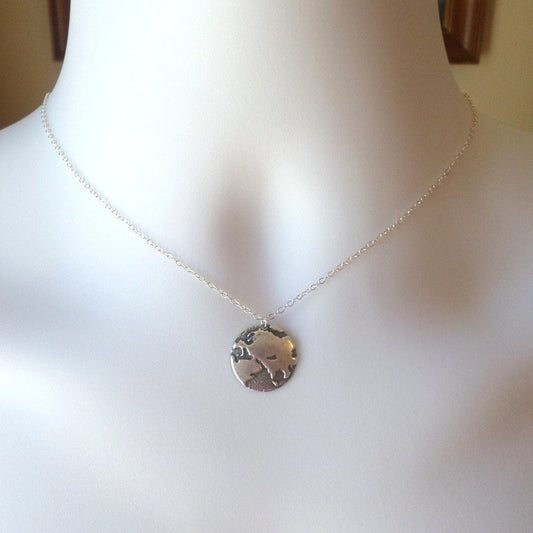 Silver Globe Necklace - Silver Round 1/2 Globe Charm Necklace - European Countries Silver Necklace - Earth Necklace - Christmas Gifts