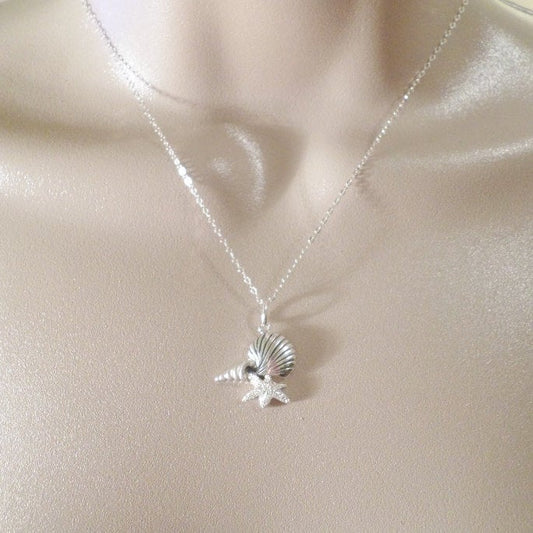 Seashell Necklace, Nautical Necklace, Silver Seashell Necklace, Sterling Silver Necklace, Nautical Jewelry, Christmas Gift, Gifts for Her
