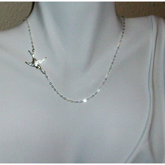 Bird Necklace, Sparrow Necklace, Sterling Silver Necklace, Sideways Fly Away Silver Bird Necklace, Bridesmaid Gift, Wedding, grey, white