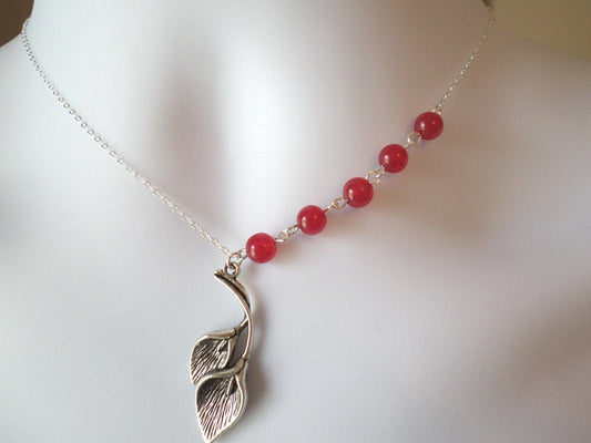 Sterling Silver Red Jade and Calla Lily Pendant Necklace - Gemstone Necklace - Calla Lily Necklace