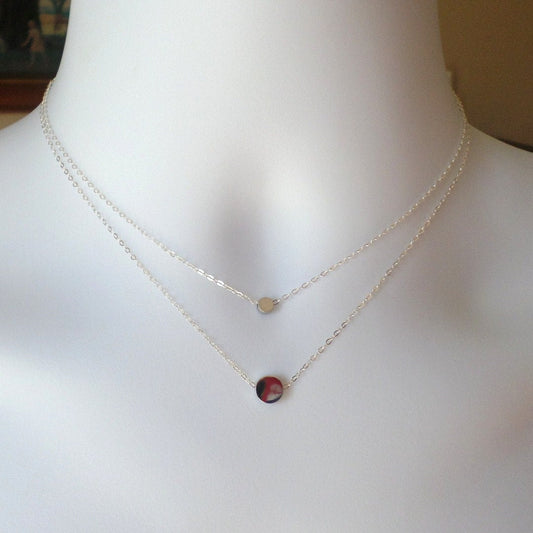 Set of 2 Layering Silver Dot Necklaces - Silver Circle Necklaces - Sterling Silver Necklace - Tiny Necklace - Christmas Gift